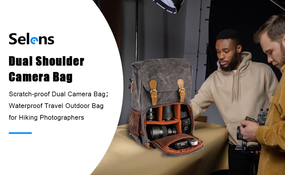 Mochila Grande Vintage Selens para Câmera SLR, Bolsa de Lona Impermeável para Laptop de 15 Polegadas